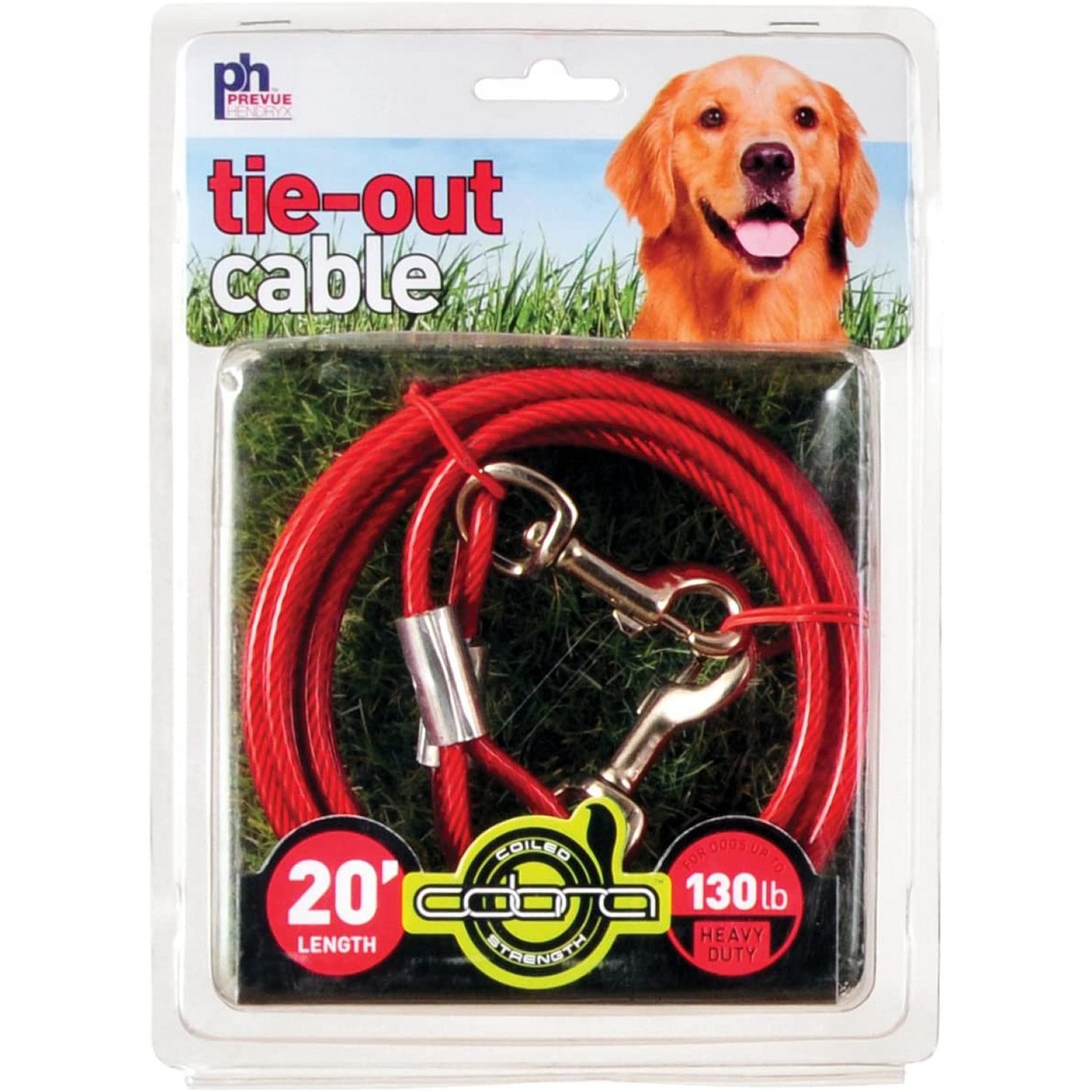 Prevue Pet Products heavy-duty 20Æ tie-out chain 2117 is designed for dogs up to 150 lbs. Zinc plated welded oval links are strong, ensuring your dog stays safe and secure. Premium quality die-cast iron swivel bolt snaps at both ends connect easily and prevent tangling. Heavy duty tie out chain is 20 foot long and 3.8 mm in diameter.